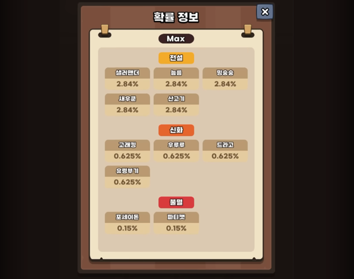 게임 내 표기되는 운빨존많겜의 펫 뽑기 확률 정보