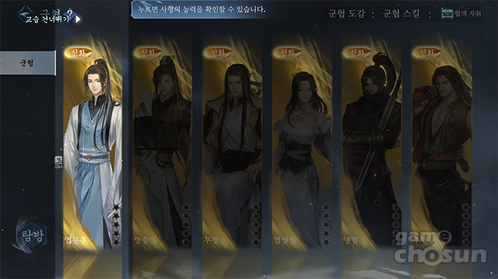 '역수한'은 론칭 기준 6종의 유파를 선택할 수 있으며 각각의 고유 무공을 사용하게 됩니다.