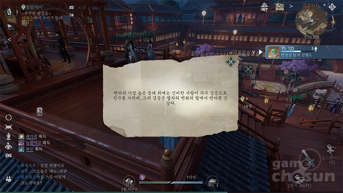 시작하자마자 짧은 스토리를 감상하고, 방문하게 되는 변경성의 단수항에서 퀘스트 알리미에 보이는 메인 퀘스트를 해결한다고 하면 십여 분 만에 다른 지역으로 이야기가 전개되지만, 그곳에 남아 이것저것 찾아보고 말을 걸고 탐험을 더 즐기고자 한다면 각종 소문과 풍문을 수집하고, NPC들을 만나 수수께끼를 풀어내고, 지붕 위, 처마 밑, 연못의 다리 밑까지 모두 돌아다니며 족히 1시간 이상은 더 즐길 거리를 찾아낼 수 있을 정도입니다.