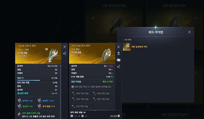 아울러 십부장 장비 중 가장 추천되는 부위는 바로 가더로, 가더는 바크론의 공중섬까지 공략해야만 얻을 수 있고, 드랍 확률도 낮은 편이기 때문에 임시 방편으로 십부장 가더를 구입해 장비 점수를 보완하면 된다.
