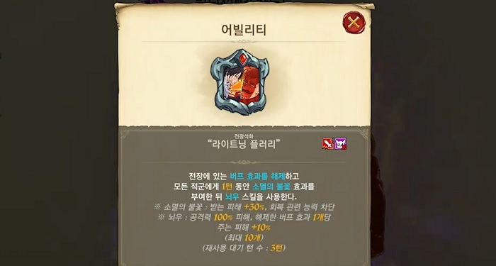 즉 어빌리티의 뇌우가 개성 효과와 연계되면서 멀린 & 에스카노르의 핵심인 섬멸의 불꽃이 발동되는 구조다. 추가로 회복 관련 능력 차단 역시 멀린 & 에스카노르의 활용 가치를 높이는 요소가 될 것으로 보인다.