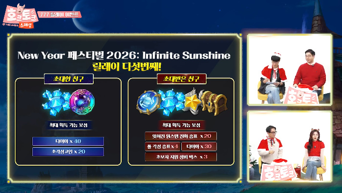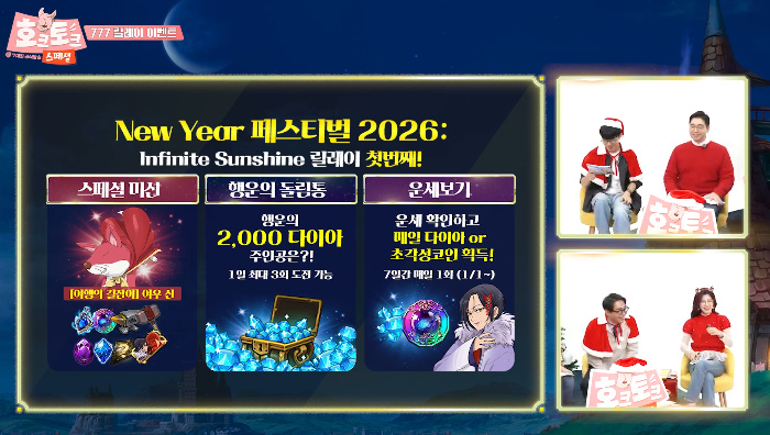 이날 호크토크 방송은 크리스마스 당일 진행된 만큼, 그 분위기에 걸맞게 꾸며졌으며 마치 산타클로스가 찾아온 듯 푸짐한 선물을 준비해 이용자들을 맞이했다. 특히 신년 페스티벌과 관련된 깜짝 놀랄 만한 소식이 공개되면서 그 어느 때보다도 뜨거운 분위기 속에서 진행됐다.