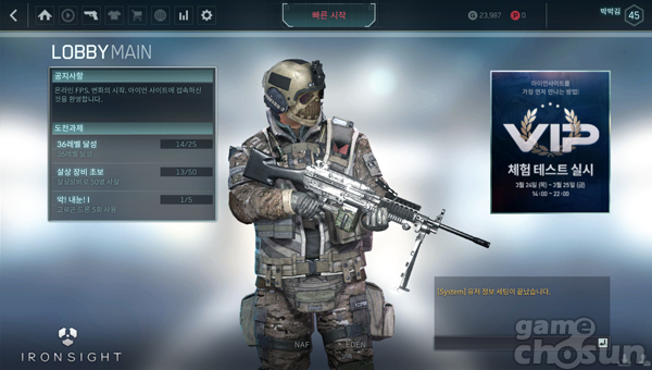 드론과 각종 신무기 등을 도입해 차세대 FPS게임을 표방하는 네오위즈게임즈의 '아이언사이트'가 지난 24일과 25일 양일에 걸쳐 특정유저를 대상으로 한 VIP 테스트를 진행했다.