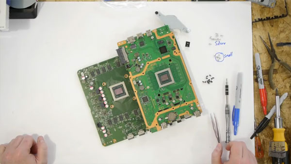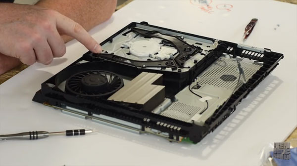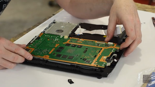 그는 포장된 제품 상자에서 'PS4 슬림'를 꺼낸 뒤 곧바로 작업에 들어갔다. 가장 먼저 본체에 내장된 하드드라이브를 분해했다. 하드드라이브는 드라이버와 핀셋을 이용해 쉽게 분리할 수 있었다. 이후 블루레이 디스크와 메인보드 등 PS4 슬림의 주요 구성품을 차례대로 분해해 나갔다.