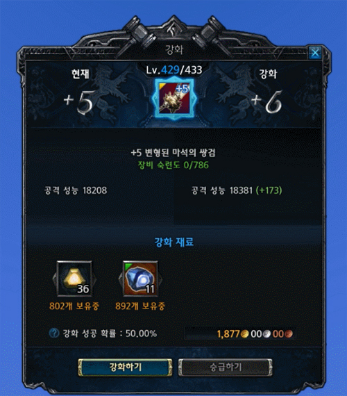 아울러 플레이 노력에 따라 확실한 리턴을 얻을 수 있는 ‘장비 숙련도’ 시스템이 추가된다. 숙련도는 일종의 장비 경험치로, 쌓일수록 강화 확률이 증가한다.