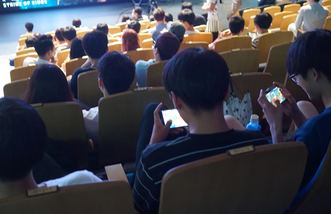 ▲ 개막을 기다리며 ‘펜타스톰’을 즐기는 이용자들