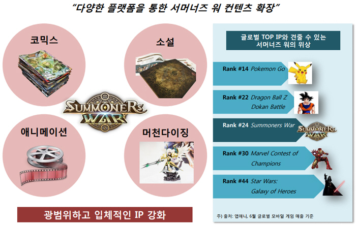 컴투스 측은 서머너즈워의 IP(지식재산권)를 코믹스, 소설, 애니메이션, 머천다이징 사업으로 확장한다는 계획을 가지고있다. 또한 서머너즈워 e스포츠 대회를 통한 라이프 사이클을 늘려간다는 계획이다.