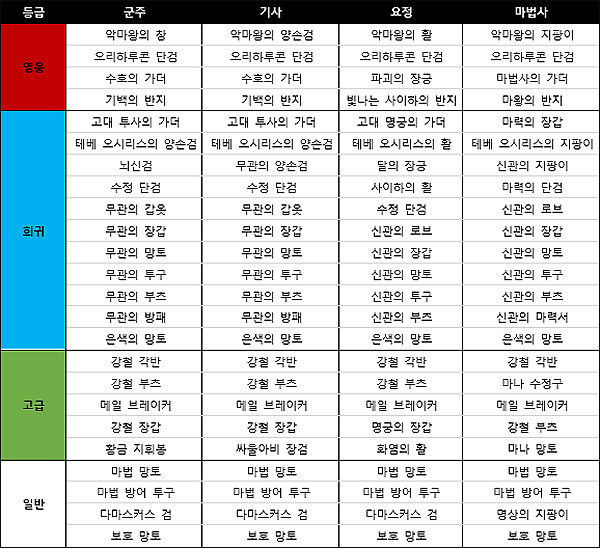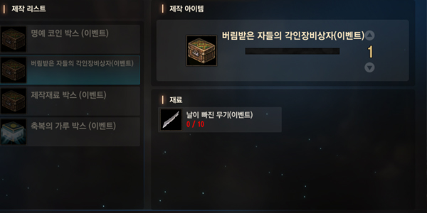 ※ 버림받은 자들의 각인 장비 상자는 상급 각인장비상자와 동일안 아이템을 확률에 따라 획득할 수 있다.