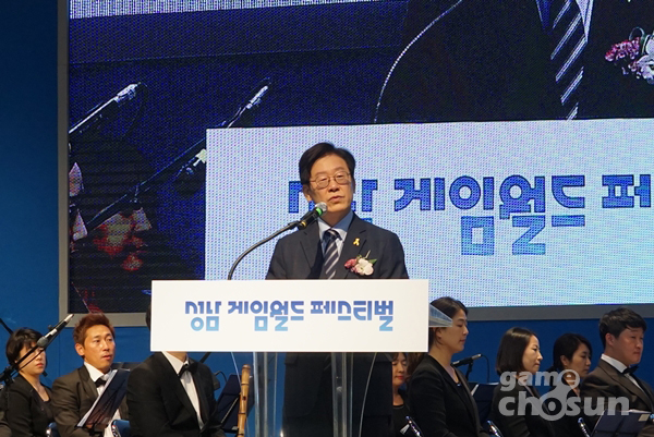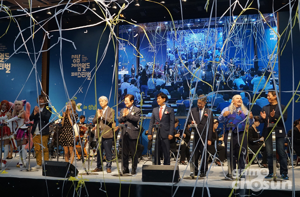 1일 오전 경기창조경제혁신센터에서 진행된 개막식에는 이재명 성남시장을 비롯해 게임 관련 기업인, 유관기관 관계자, 시민 등 300여명이 자리했다. 성남시립국악단이 ‘뮤레전드’ ‘블레이드앤소울’ 게임 음악을 주제로 공연을 선보였다.