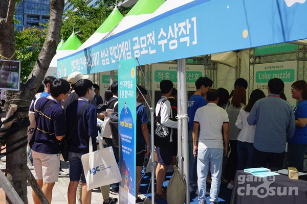 판교 테크노밸리에 위치한 행사 현장에는 VR(가상현실), 인디게임 등 각종 게임 체험 프로그램과 코스프레 이벤트가 마련됐다. 관람객들은 정해진 테마별 부스를 방문한 뒤 스탬프를 모아 선물로 교환할 수 있다.