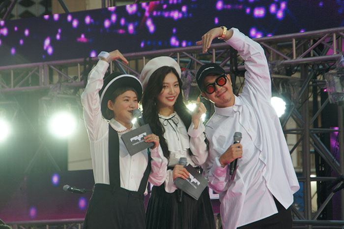 ▲ (왼쪽부터) 행사 진행을 맡은 김신영, 레드벨벳 조이, 하하