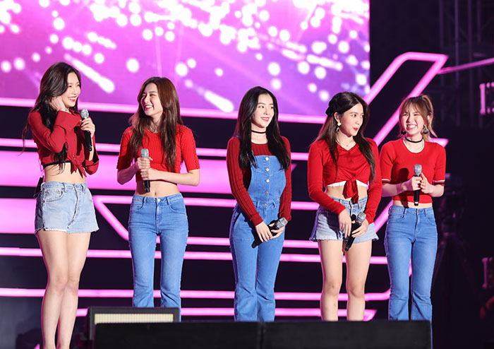 ▲ 노래를 끝낸 직후 관람객에게 인사하는 레드벨벳.