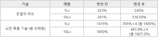다음 기술의 PvE 피해량 및 PvP 피해량도 각각 상향됐다.