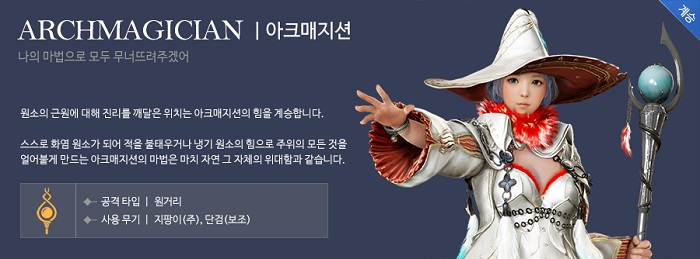 기존의 위치 클래스는 각성 클래스인 '아크메이지'가 존재했으나 이번 업데이트를 통해 계승 클래스 '아크매지션'이 새롭게 등장했다. 아크매지션은 기존 위치의 무기와 보조무기를 그대로 사용할 수 있으며 화염 및 냉기 원소 등의 마법을 구사하면서 다수의 적에게 큰 타격을 준다.