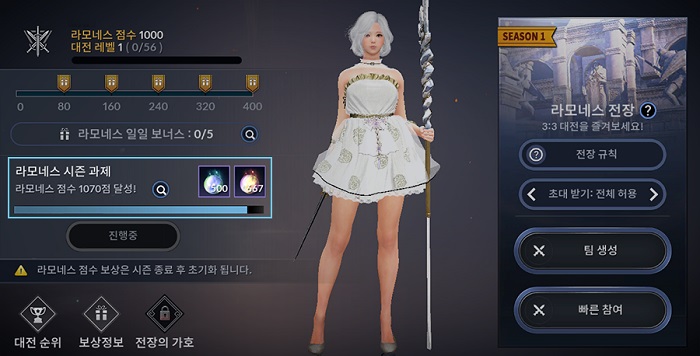 ■ 대전 정규 시즌 진행 및 라모네스 전장 보상 증가