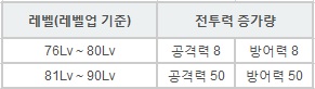 캐릭터 최대 레벨을 90으로 확장하는 한편, 레벨업을 위한 필요 경험치를 전 구간에 걸쳐 소폭 감소시켰다. 특히 71레벨 이상 필요 경험치를 대폭 감소시켰다. 76레벨부터는 레벨업 시 증가하는 전투력이 상향 조정되었다.