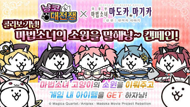 「극장판 마법소녀 마도카☆마기카:【신편】반역의 이야기」와의 콜라보레이션을 기념하여 5월 27일(월)부터 냥코대전쟁 공식 페이스북 페이지에서 콜라보 기념 SNS 캠페인을 개최한다.