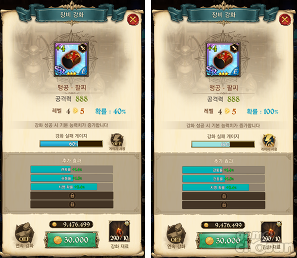 무엇보다 강화 실패 게이지를 추가하여 추후 장비 강화 확률 보정 계획을 공개하며 골드와 강화석 등 과금 유저도 쉽지 않던 장비 강화의 벽을 대폭 완화할 것을 밝히기도 했다.
