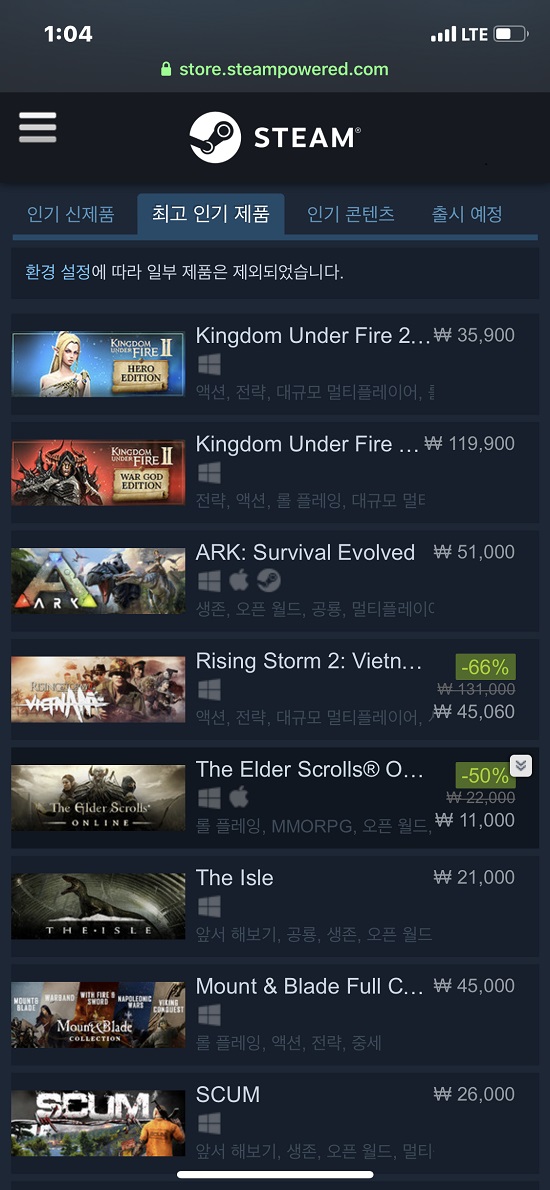 Massively Multiplayer 부분에서는 가격대가 다른 두 개의 킹덤언더파이어2 패키지인 “Heroes Edition”과 “War God Edition”이 최고 인기게임(Top Selling) 부분 10 위 권 안에 각각 랭크 되어 킹덤언더파이어2가 STEAM에서 높은 관심과 인기를 바탕으로 순항 중임을 확인할 수 있다.