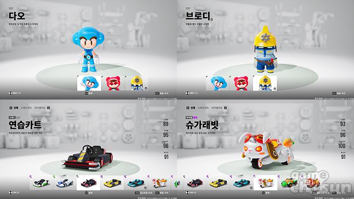 이외에도 솔로 연습이나 캐릭터 커스터마이징 등 카트라이더만의 매력을 그대로 살리고 있다. 카트라이더의 간판 캐릭터인 다오나 배찌 등이 일부 미세하게 캐릭터에 변화가 생겼지만, 계속 보다 보면 큰 차이 없이 적응할 수 있었다.