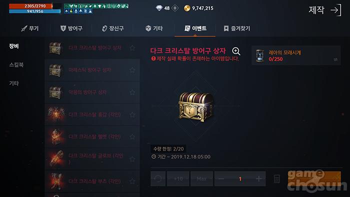 방어구를 노려볼 수 있는 레아의 모래시계 = 게임조선 촬영