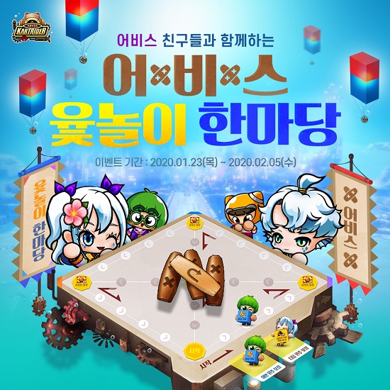 ‘카트라이더’에서는 설날을 맞아 23일부터 2월 5일까지 ‘어비스 윷놀이 한마당’을 진행한다. ‘어비스 설날은 오늘이래요’ 등 게임 내 퀘스트와 이벤트에 참여해 모은 ‘윷 보석’으로 ‘카트라이더’ 홈페이지에서 윷놀이에 참여하면 완주 보상으로 ‘나린 낭자’, ‘너울 도령’, ‘흑기사 X’와 같은 풍성한 아이템을 지급한다.