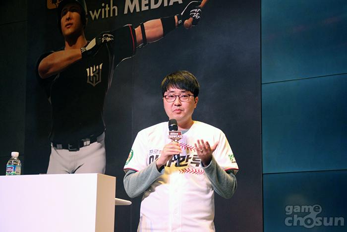 후속작을 통해 더욱 리얼한 야구를 즐길 수 있었다고 밝힌 민훈기 위원 = 게임조선 촬영