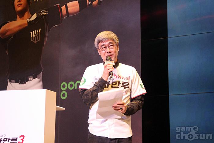 게임 소개에 이어서 민훈기 해설위원의 축사가 있었다. 민훈기 위원은 "'팩맨'이라는 게임이 있었다. 미국 유학 과정에서 즐겼던 게임이다. 동전 하나로 30분 넘게 즐겼을 정도로 가장 빠졌던 게임이다. 이후 기자 생활 당시엔 닌텐도 게임을 즐겼다. 이후 미주 특파원으로 나가면서 여러 선수를 취재했다. 그때부턴 게임과 멀어졌는데, 작년 12월에 이사만루2로 게임을 다시 잡게 됐다. 조그만 핸드폰에서 사실적인 게임을 할 수 있어서 놀랐고, 타자와 심리싸움을 할 수 있다는 느낌도 들었다. 그 후 이사만루3을 했는데 좀 더 어려웠지만, 더욱 사실적으로 발전했다. 다격이나 투구도 훨씬 사실적으로 바뀌었다. 이사만루3가 공게임즈가 원했던 게임으로 거듭날 것이다"라고 전했다.