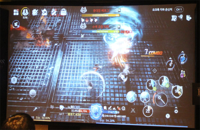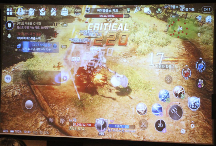 이어서 소개한 특징은 논타겟팅 전투와 몰이사냥이다. 논타겟팅 전투를 통해 정교한 컨트롤이 가능하며, 덕분에 손맛을 느낄 수 있다는 것이 설명이다. 또, 투사체가 날아오더라도 캐릭터에 맞지 않으면 타격 판정이 인정되지 않는 등, 매우 정교한 전투 시스템을 갖췄다.