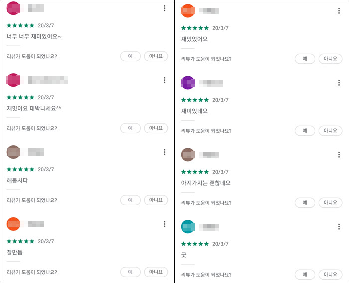 단 하루만에 구글 플레이스토어 평점이 극적으로 호평으로 바뀌며 두 배 가까운 평균 평점 상승이 이루어진 셈이다.