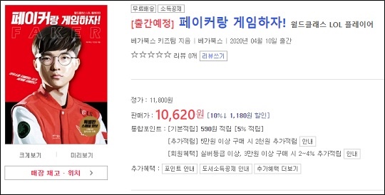 책의 표지부터가 페이커의 공식 트위치 채널 프로필 이미지를 도용한 모습이다 = 교보문고 홈페이지