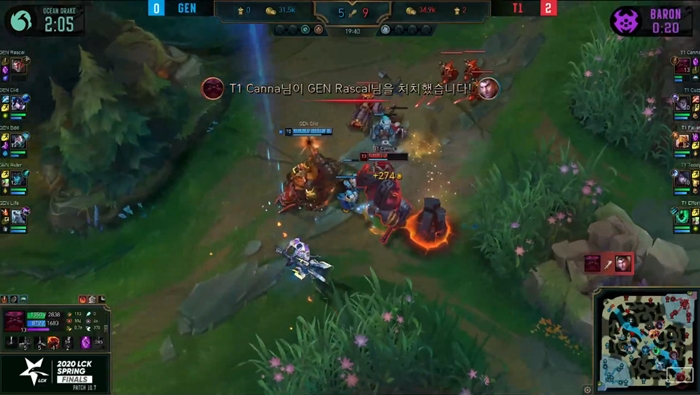 젠지는 티원을 곱게 돌려보내지 않겠다는 판단으로 바론 둥지 내에 있던 티원 챔피언들에게 체력을 채우고 돌아온 탱커들을 밀어넣고 룰러의 이즈리얼이 텔레포트 합류로 쓸어담는 그림을 그렸으나 여기서 칸나가 또 다시 이즈리얼의 화력 투사를 잘 버텨내고 국왕시해자로 체력을 회복한 뒤 역으로 킬을 내며 사실상 젠지를 전멸시켜 경기를 끝내는 데 성공했.
