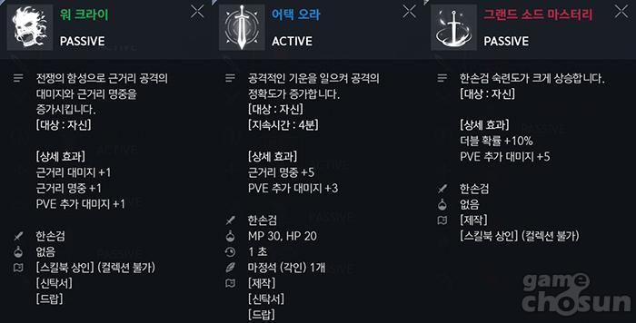 한손검 스킬에는 PvE 추가 대미지 옵션이 새롭게 추가됐다. = 게임조선 촬영