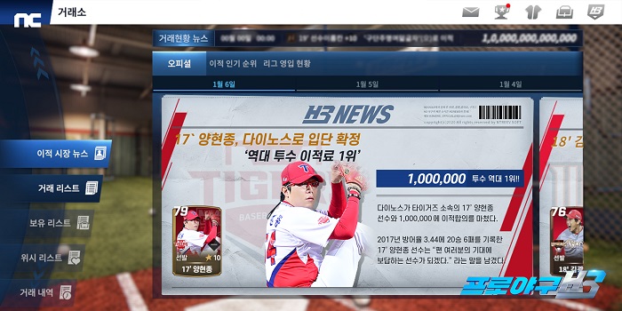 프로야구 H3의 가장 큰 특징은 현대 야구의 트렌드를 녹여냈다는 것이다. 이를 통해 야구팬을 위한 게임이 되는 것이 목표다. 이용자는 구단주가 돼, 프론트를 파견해 선수를 영입하는 등의 한층 더 전문적인 경험을 선사한다. 또, 이용자 간 트레이딩 중심의 게임이 되기 위해 팀의 전력 보강을 위한 이적시장을 선보인다는 계획이다.