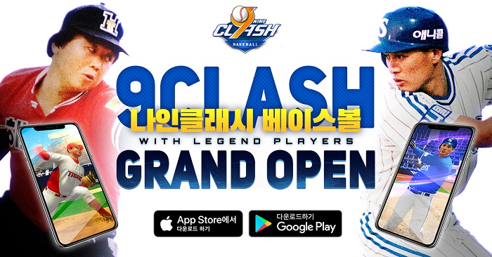 ‘나인클래시 베이스볼’은 9회 1아웃 주자랜덤 상황에서 시작하는 새로운 모바일 야구게임으로, KBO 라이선스 게임 중에서는 한손으로 플레이가 가능한 유일한 세로 게임이다. 유저는 프로야구 레전드 슈퍼스타 선동렬, 이승엽, 이종범, 박명환, 장성호, 서재웅 등 선수카드를 수집해 실시간 PVP를 즐길 수 있다.