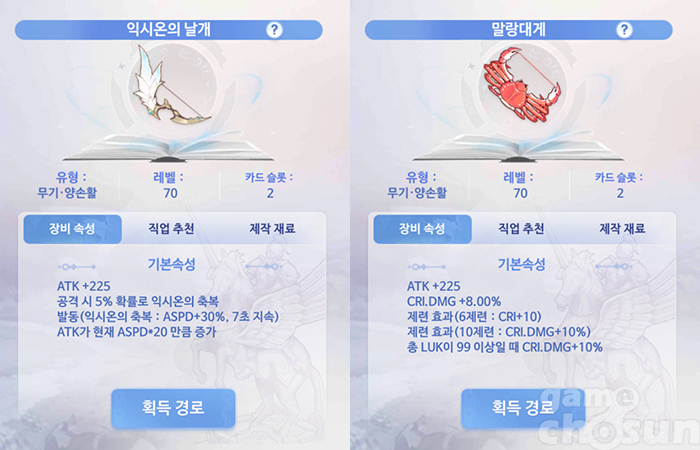 ■ 궁수는 '익시온의 날개'와 '말랑대게' 중 취향껏