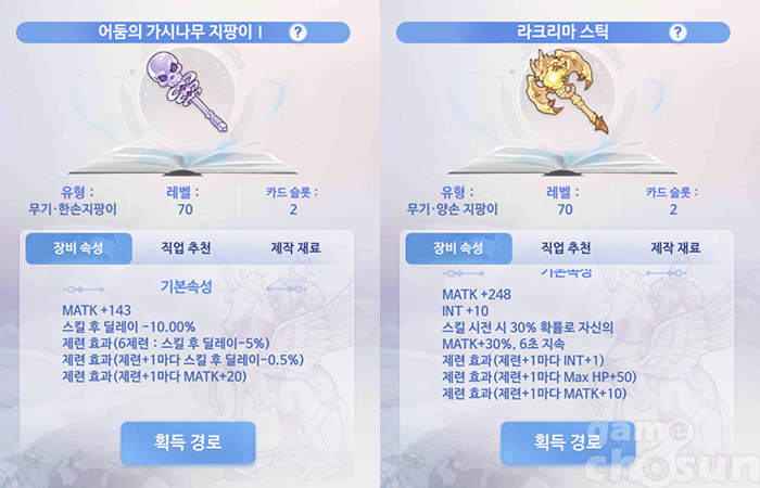 ■ 무과금 마법사는 '어둠의 가시나무 지팡이', 카드가 충분하다면 '라크리마 스틱'