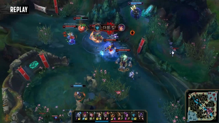 정작 변수는 이번에도 바텀에서 터져나왔다. 베릴의 서포터 판테온에 이어 고스트가 대놓고 안티 캐리 전략을 구사할 때 종종 등장하는 드레이븐이 막픽으로 나왔고 근거리-중거리 인파이팅에 특화된 칼리스타와 쓰레쉬는 대놓고 강력한 화력을 쏟아내는 담원 게이밍의 조합을 이겨낼 수 없었다.