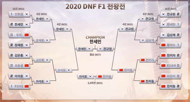 파트 1은 F1결투천왕대회와 겨울 업데이트 소개가 동시에 진행됐다. F1결투천왕대회는 한-중 양국 간 최상위권 8명의 선수끼리 국가의 자존심을 걸고 던파의 PvP 콘텐츠인 결투장으로 대결하는 국제 리그다. 국내에선 지난 9월, 11월 진행된 언택트 토너먼트에서 활약한 장재원, 진현성, 편세현, 한세민, 이석호, 김은총, 김상제, 전규원 선수가 출전했다.