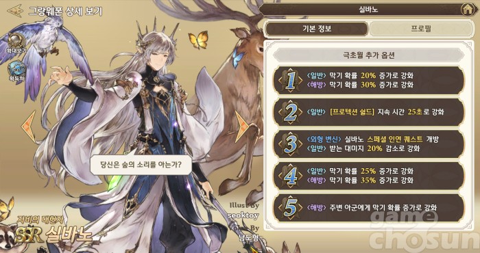 엔픽셀이 서비스 중인 모바일 MMORPG '그랑사가'의 SSR등급 그랑웨폰 실바노는 뛰어난 방어 스킬을 가지고 있다.
