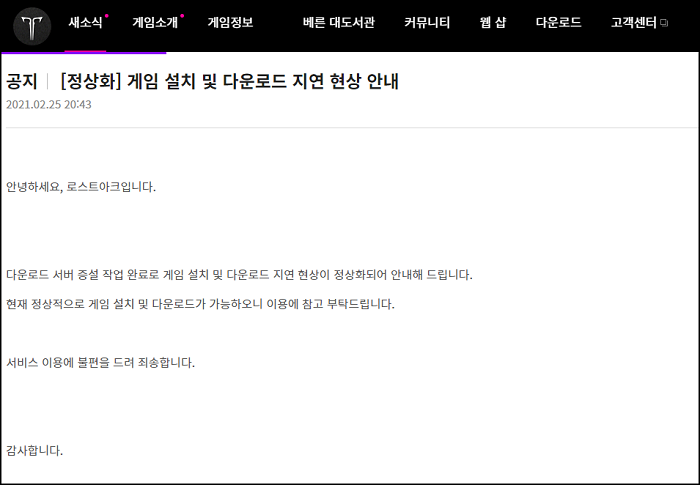 이런 분위기 속에서 3월 3일, 로스트아크 금강선 디렉터는 공식 홈페이지의 개발자 노트(리샤의 편지)에 '모험가님께 드리는 감사편지'라는 제목으로 현재 일어나고 있는 상황에 대한 감사 인사를 올렸다.
