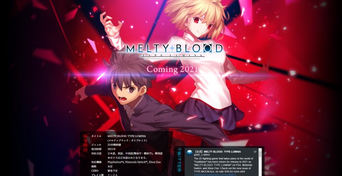 팬하면 '타입문'의 게임이 빠질 수 없죠. 바로 '멜티 블러드'입니다. 타입문의 인기 작품인 '월희'로 만든 격투 게임이지만, 이식만 계속될 뿐 월희와 마찬가지로 10년 넘게 후속작이 나오지 않은 상황이었죠. 그런데 월희의 리메이크 작품이 공개된 것에 이어 이번엔 멜티 블러드 신작인 '멜티 블러드 타입 루미나'의 2021년 출시가 결정됐습니다. 게다가 이 게임은 공식 한국어 번역을 지원한다고 하네요.