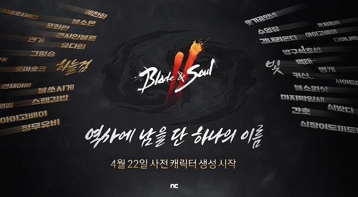 [자료제공 = 엔씨소프트] 엔씨소프트(대표 김택진, 이하 엔씨(NC))의 신작 MMORPG(다중접속역할수행게임) ‘블레이드 & 소울 2(이하 블소2)’가 오는 4월 22일 사전 캐릭터 생성을 예고했다.