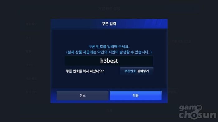 쿠폰 입력 장면 대소문자 구분 없이 입력하면 된다 = 게임조선 촬영