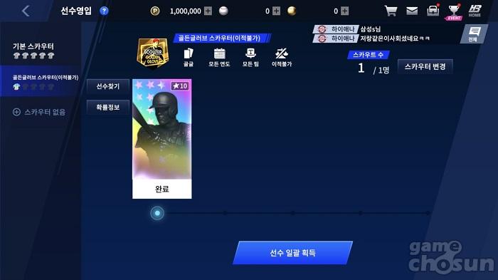 10성 선수 영입 시 일정 확률로 EX등급의 선수카드를 얻을 수 있다 = 게임조선 촬영