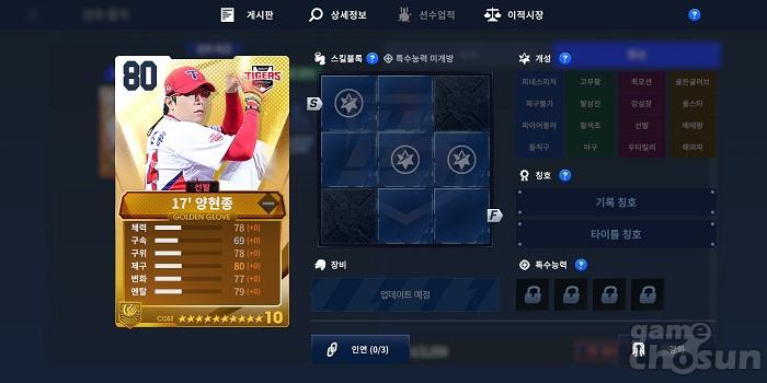 골든글러브 등급 양현종 카드, 활동연도는 기아 타이거즈가 우승한 17년 = 게임조선 촬영
