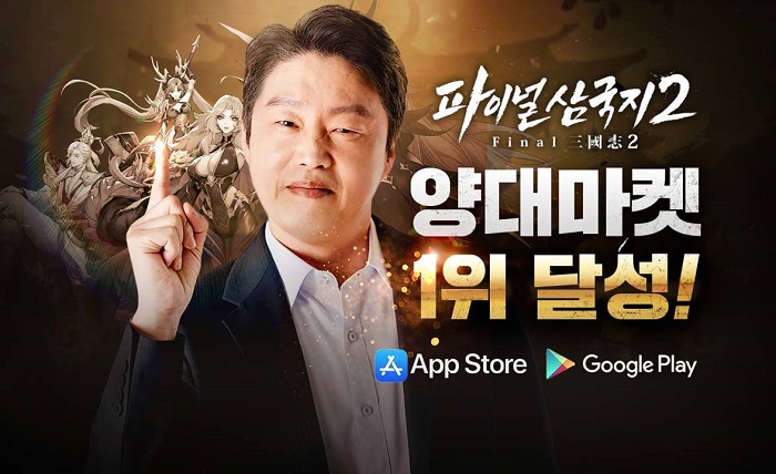 모바일 게임 기업 게임펍은 신작 모바일 게임 ‘파이널삼국지2’가 출시 하루만에 구글 플레이, 애플 앱스토어 국내 양대 마켓 인기 1위에 등극했다고 23일 밝혔다.