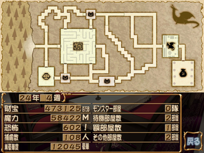 가장 먼저 떠오르는 게임은 바로 '소프트하우스 캬라'의 '둥지짓는 드래곤'입니다. 유저는 혼혈 수컷 드래곤 '블러드 라인'이 되어 제목 그대로 자신의 둥지, 몬스터와 함정으로 가득 찬 던전을 만들어야 합니다. 게임 내 시간으로 1년이라는 제한 시간 안에 훌륭한 둥지를 짓지 못하면 약혼자인 '류미스베룬'에게 살해당하기 때문에 최대한 비싸고 강력한 몬스터 및 함정을 채워 넣어 평가도를 높여야 합니다. 한 마디로 혼수로 집을 만들어야 하는 현실감 넘치는 게임인거죠.