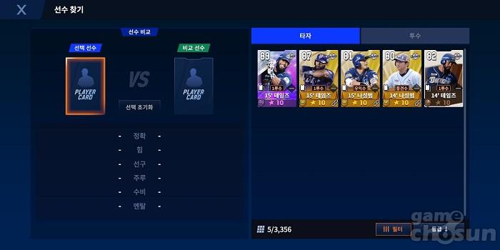 낮은 등급의 콜업카드와 수석 스카우터를 사용하면 영입 난이도가 크게 줄어드는 EX 테임즈 = 게임조선 촬영