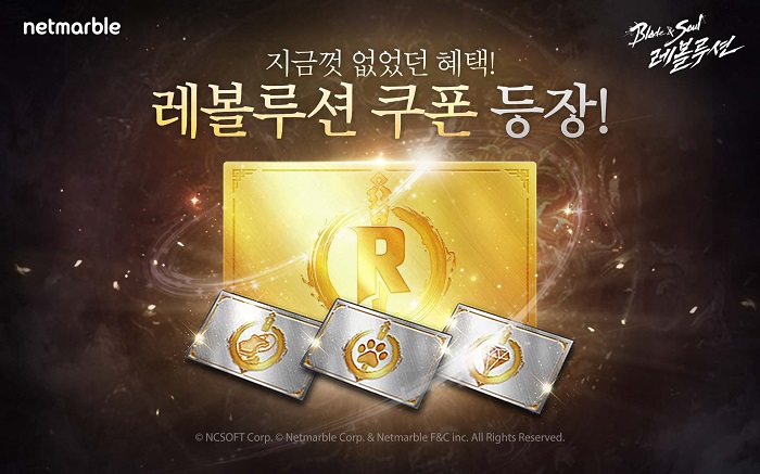 넷마블은 이용자들에게 특급 혜택을 제공하는 레볼루션 쿠폰 이벤트도 준비했다. 해당 쿠폰은 보석, 무공패, 수호령 3종으로 구성돼 있으며, 각 쿠폰 사용 시 전설 등급에서 한 단계 상승시키거나 원하는 옵션으로 변경할 수 있다. 전설 등급의 보석, 무공패, 수호령이 없을 경우에는 쿠폰을 재료로 사용해 전설 등급의 아이템을 획득할 수 있다. 레볼루션 쿠폰은 오는 6월 24일까지 게임 내 상점에서 계정당 1회, 200은화로 구매할 수 있다.